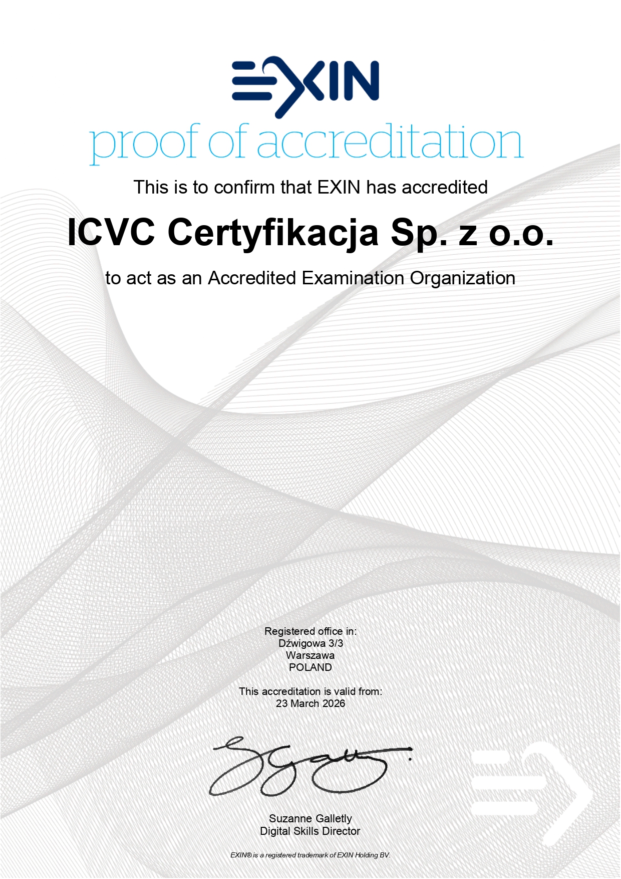 Z dumą informujemy, że ICVC Certyfikacja uzyskało oficjalną akredytację EXIN – jednej z najbardziej rozpoznawalnych na świecie organizacji certyfikujących kompetencje