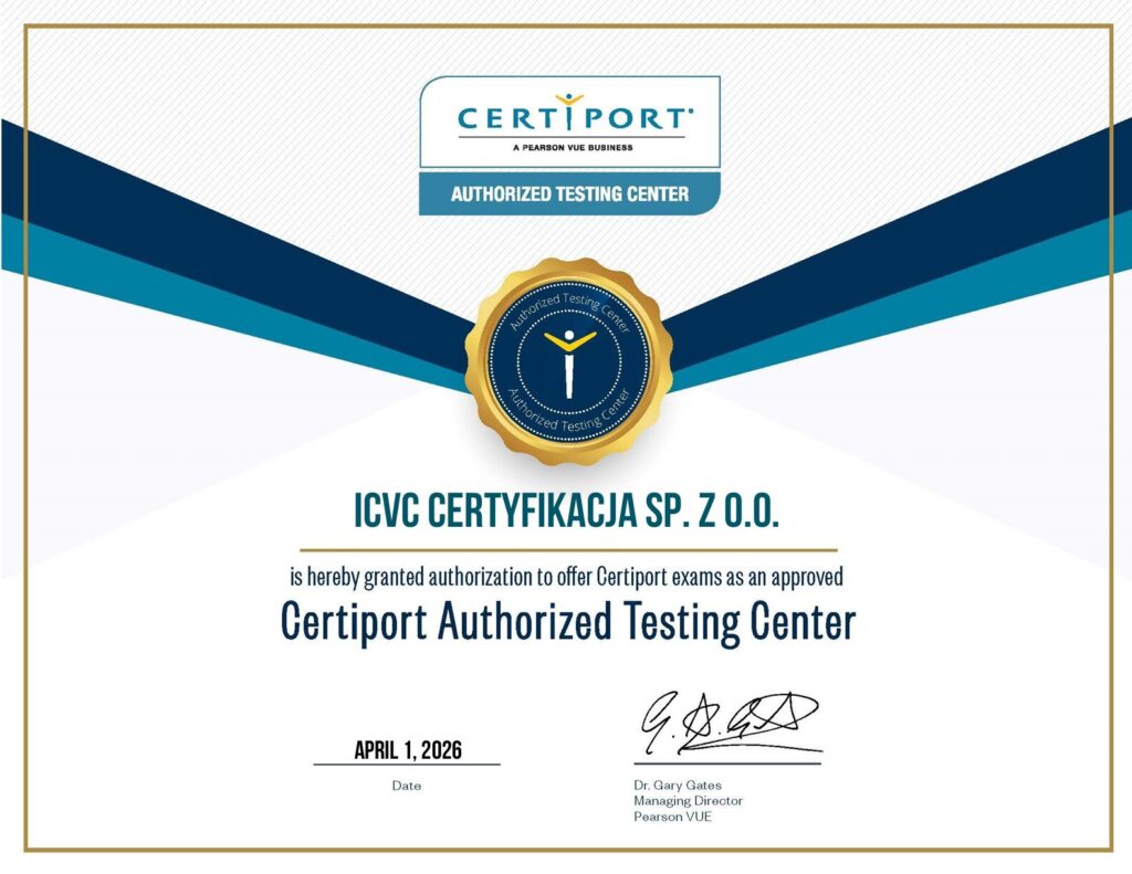 Z przyjemnością informujemy, że 1 kwietnia 2026 roku ICVC Certyfikacja uzyskało status Certiport Authorized Testing Center – oficjalnie autoryzowanego centrum egzaminacyjnego sieci Certiport.